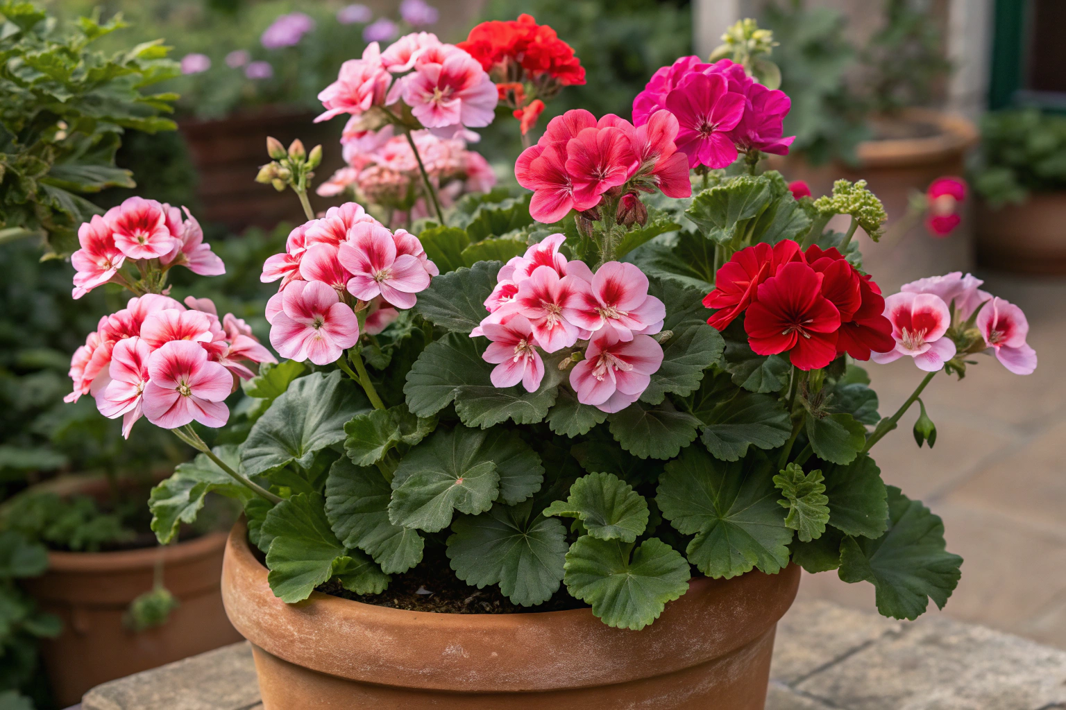 🌡️ Dato curioso: Un géranio a pleno sol en maceta pequeña necesitará agua más a menudo que uno en jardín.
