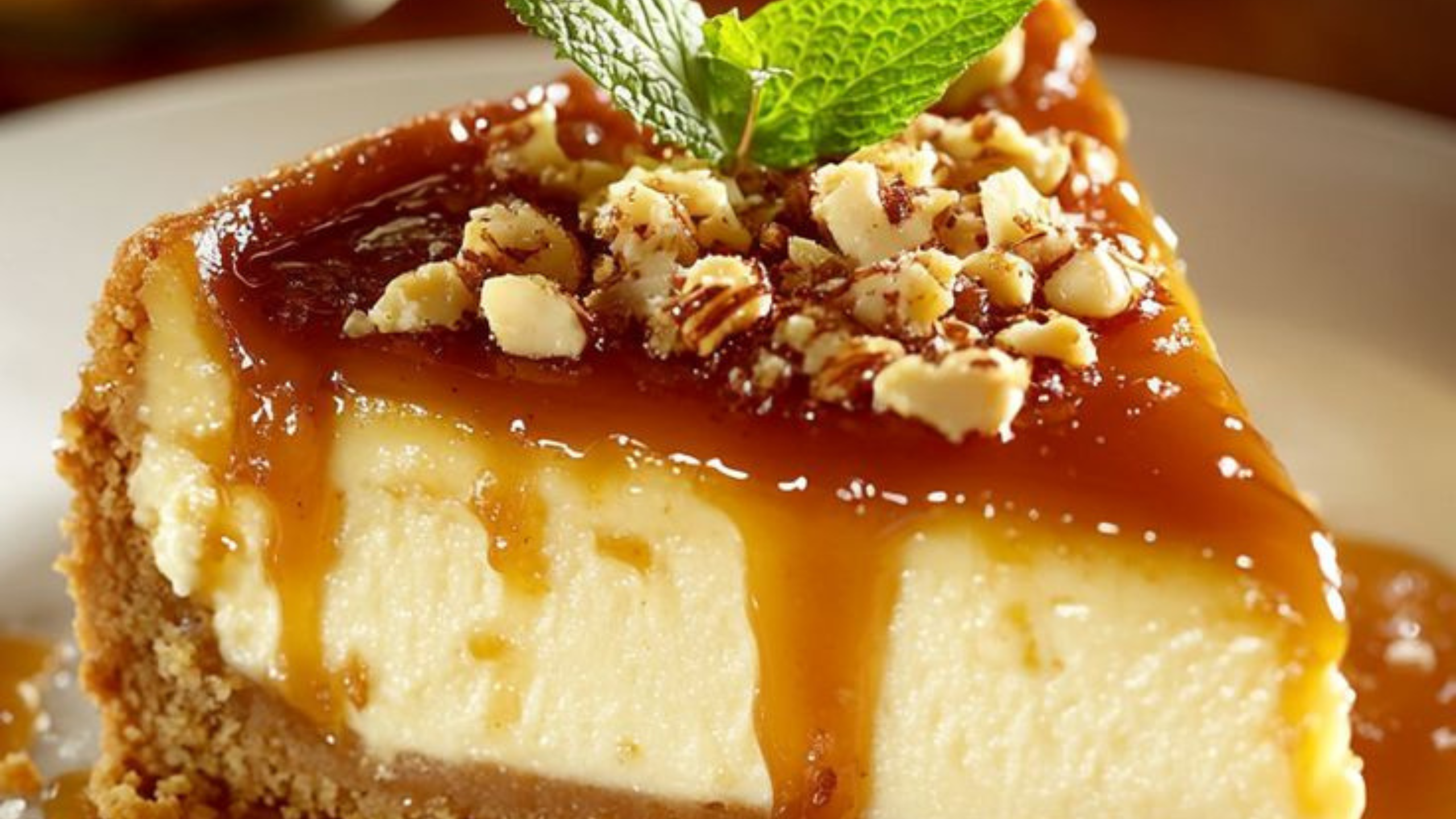 El Cheesecake con Caramelo de Mantequilla Salada es la definición de placer: cremoso, sedoso y con ese toque de caramelo salado que hace suspirar a cualquiera. 🍰💖