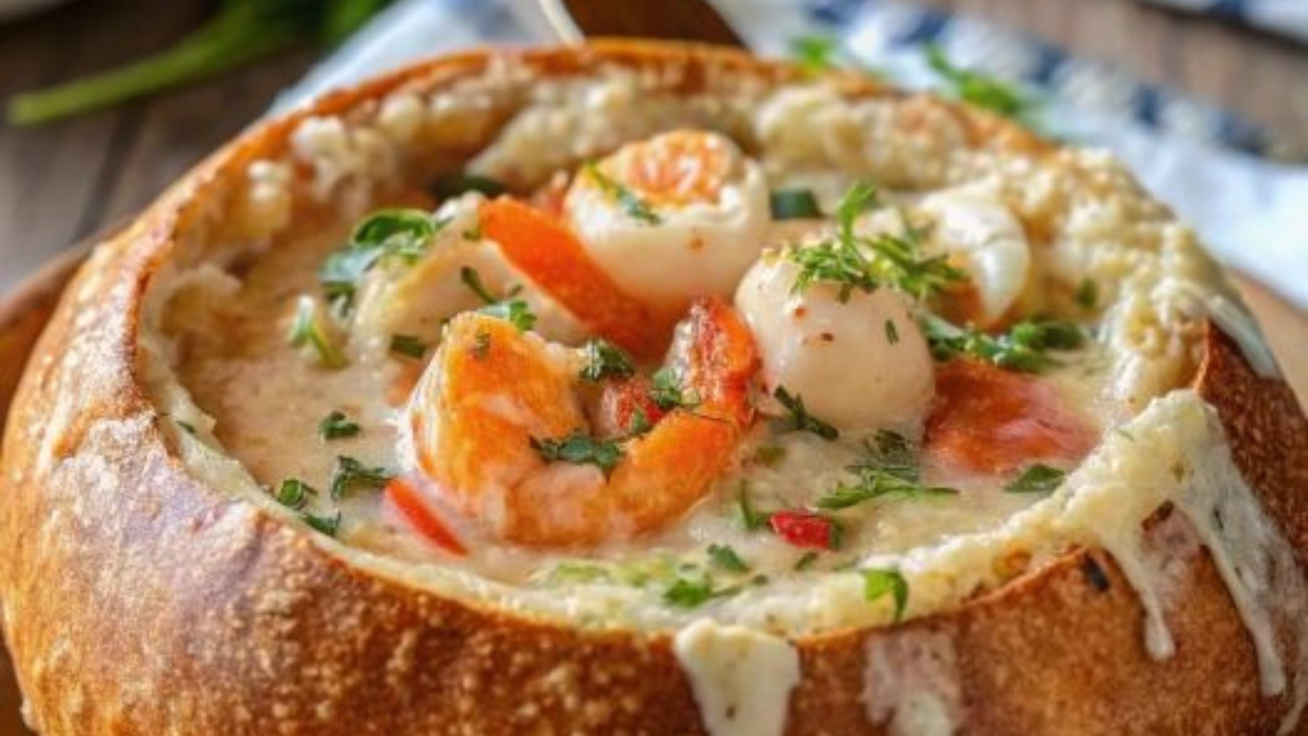 🦞🍞 Pan Relleno de Mariscos (Seafood Bread Bowl): Un Plato Exquisito y Original para Sorprender a Todos ✨🍽️