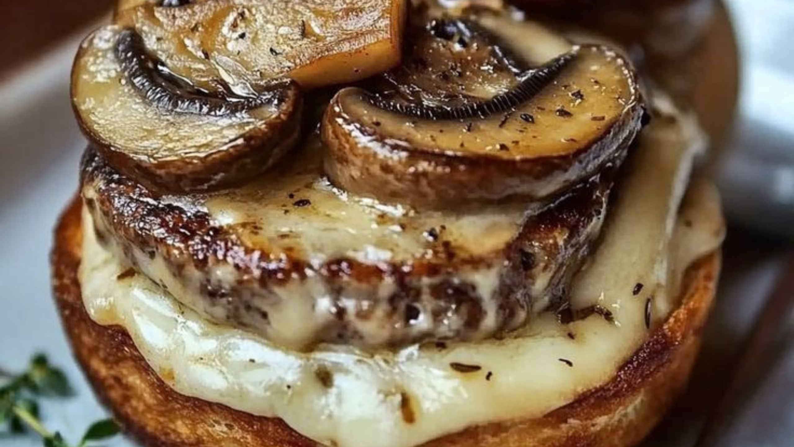 🍄🧀 Swiss Mushroom Patty Melt: Un Sándwich Irresistible con Carne, Queso Suizo y Champiñones Salteados 🍞✨