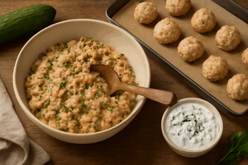 Preparación Detallada para unas Albóndigas de Pollo Jugosas y una Salsa Tzatziki Refrescante 🍽️