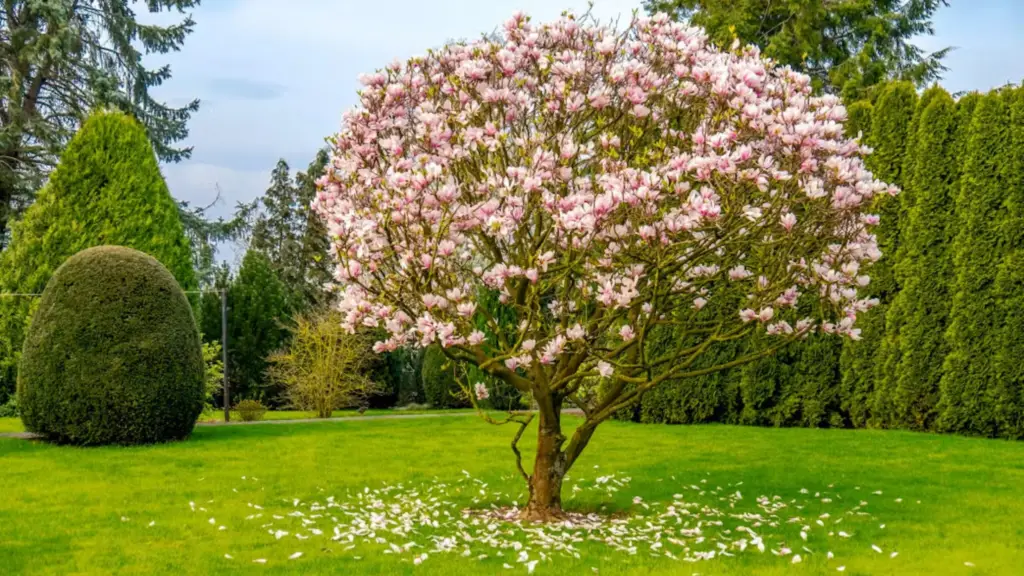 La magnolia se destaca por sus grandes flores blancas, que exudan un agradable aroma. Este árbol es conocido por su belleza y se adapta bien a diferentes climas, lo que lo convierte en una opción versátil para los jardineros.