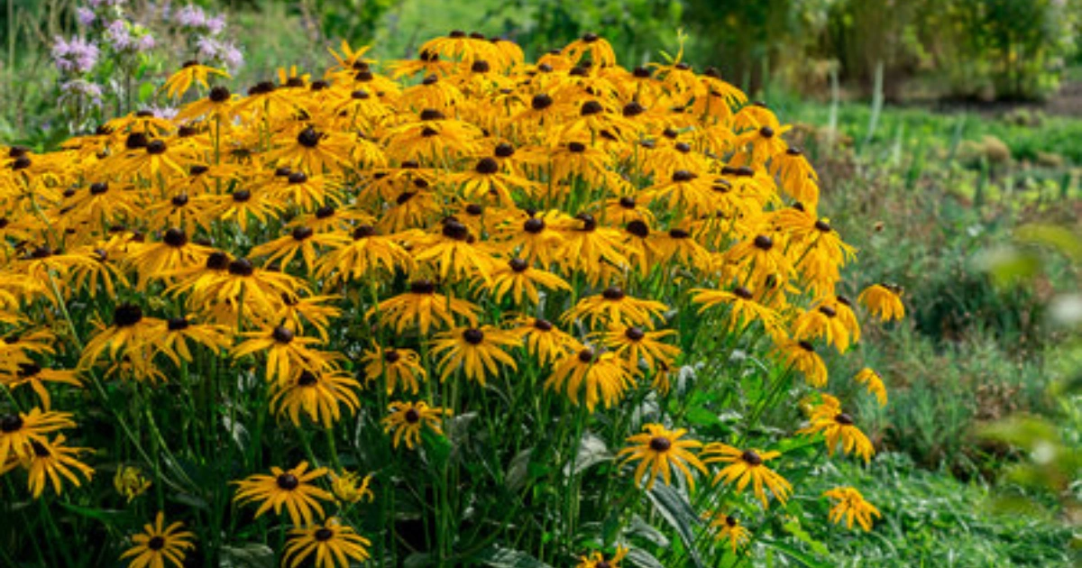 - Susana de ojo negro (Rudbeckia hirta): flores amarillas resistentes; atraen polinizadores y depredadores