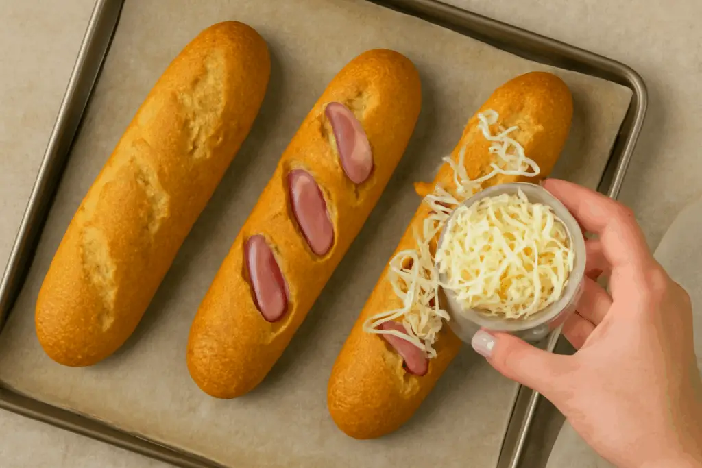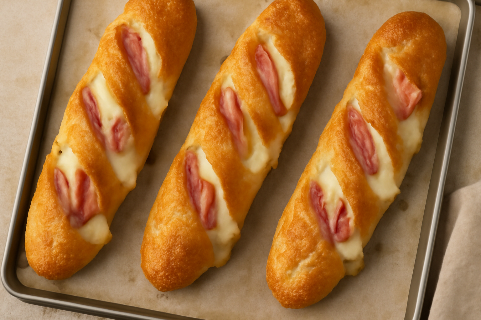 Baguettes rellenas de jamón y mozzarella – ¡Crujientes por fuera, cremosas por dentro y listas en minutos!