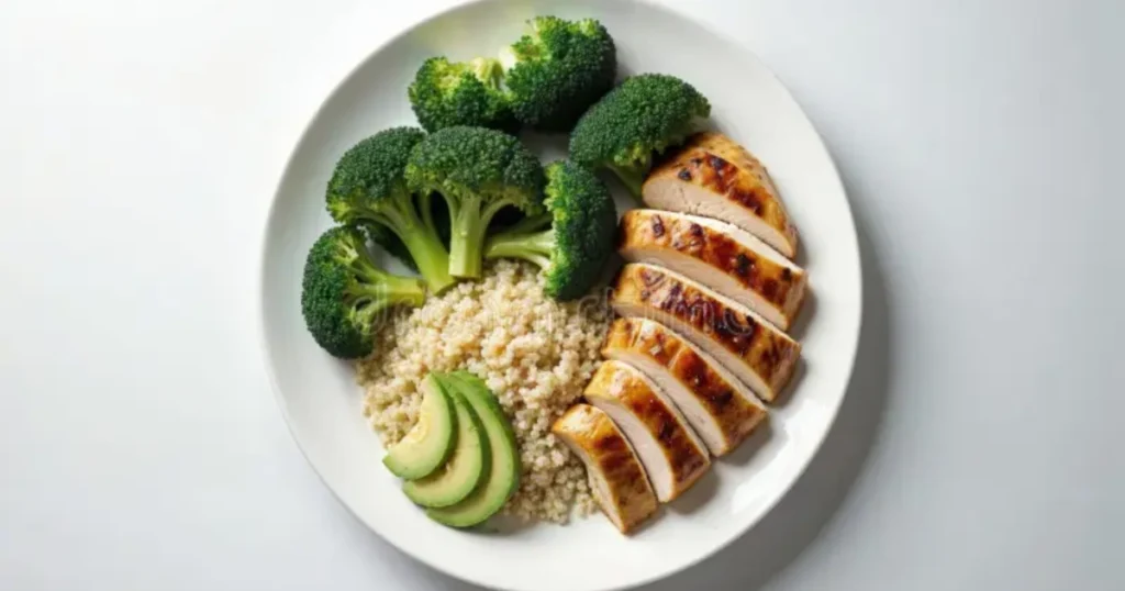 - Proteínas magras: la pechuga de pollo es baja en grasa y alta en proteínas, ideal para saciar y mantener masa muscular.