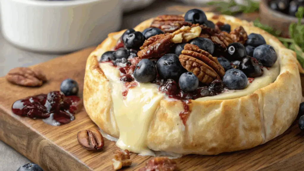 Brie al Horno con Arándanos y Pecanas en Masa: ¡Un Aperitivo Elegante y Delicioso! 🧀🍇🌰🥐