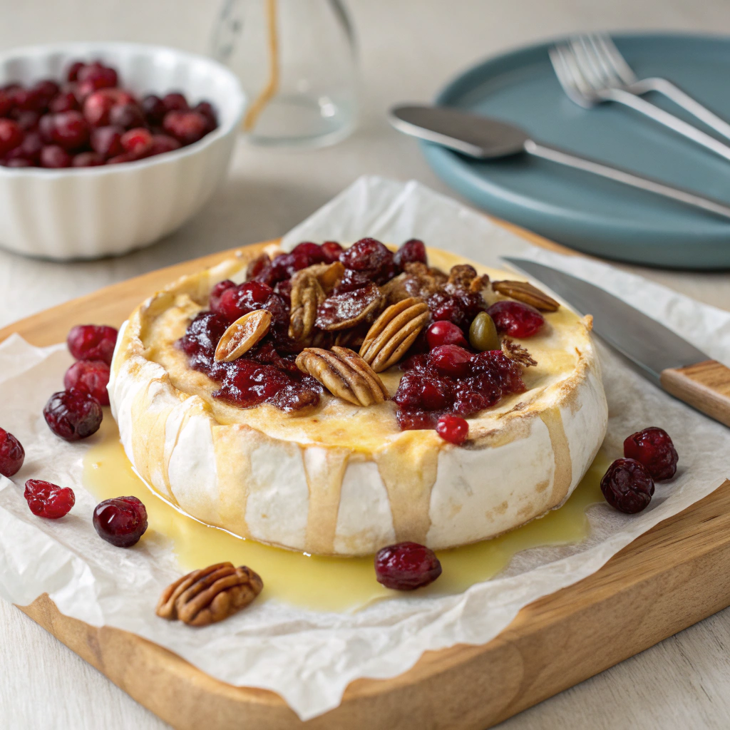 Descubre más recetas fáciles y sabrosas y disfruta de este increíble Brie al horno con arándanos y pecanas. ¡Buen provecho! 🍽️✨