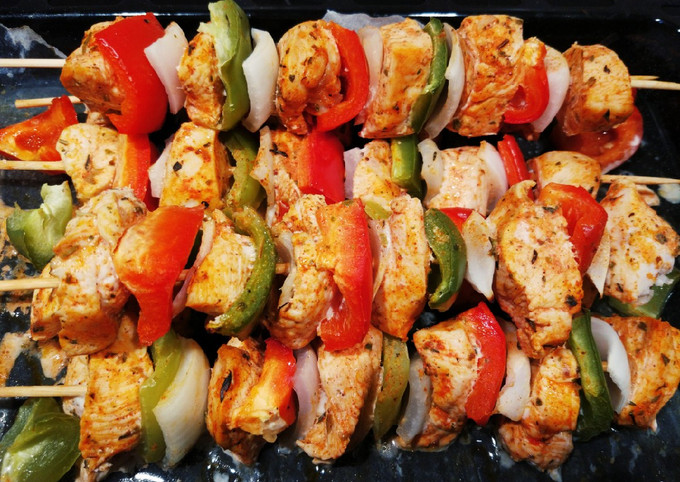 • Brochetas con verduras: alterna trozos de pollo con pimientos, cebolla o champiñones para un plato más completo.