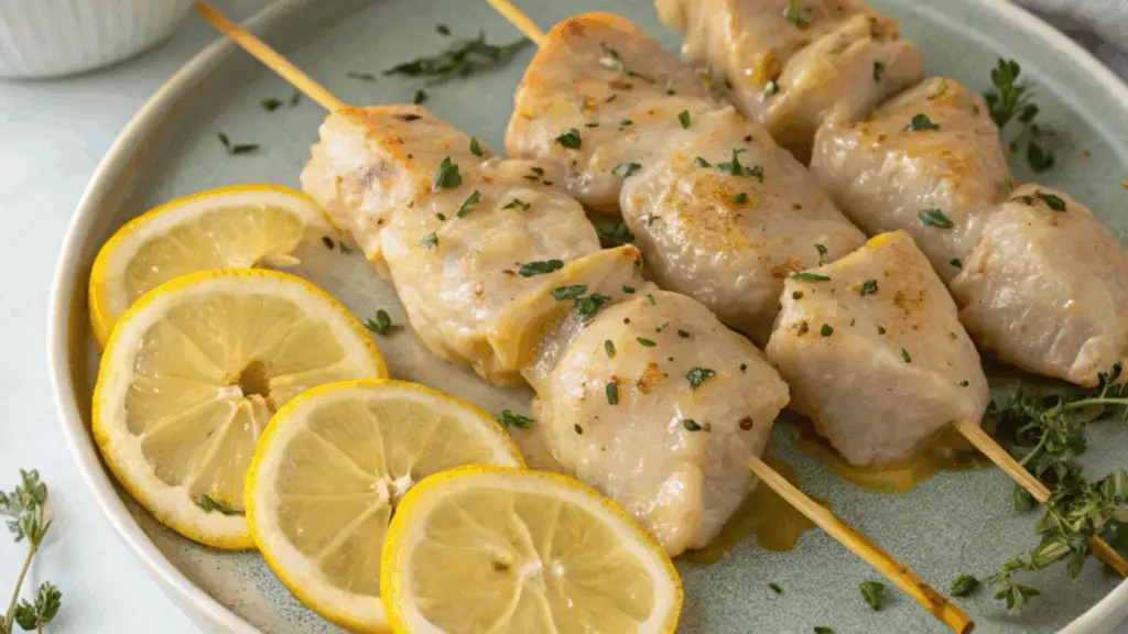 Brochetas de Pollo Marinado al Limón y Tomillo: ¡Sabrosas, Jugosas y Perfectas para una Comida al Aire Libre! 🍗🍋🌿