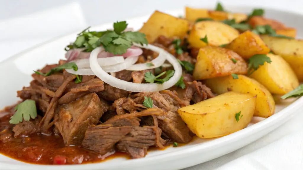 Carne Deshebrada con Papa en Salsa Roja