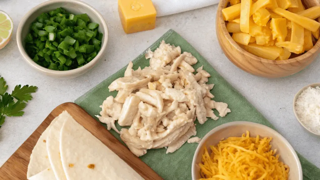 Ingredientes para los Cheesy Chicken Garlic Wraps 🍗🧄🧀