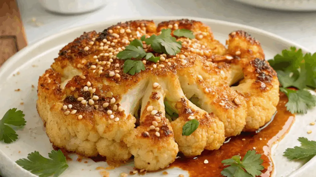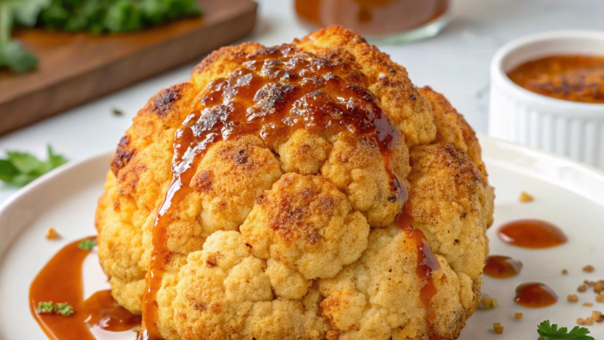 Coliflor Asada Entera con Glaseado Picante de Sriracha y Miel: ¡Deliciosa, Crujiente y Llena de Sabor!