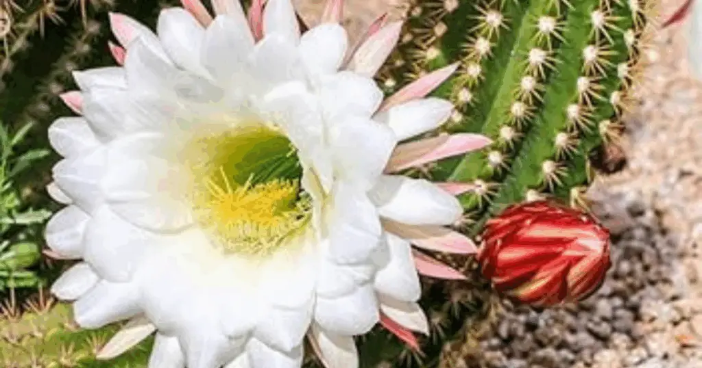 El Echinopsis candicans es originario de Argentina, donde crece en zonas áridas y soleadas. Puede alcanzar hasta dos metros de altura y desarrolla tallos robustos de color verde claro con costillas bien marcadas. Durante la primavera produce flores grandes, de color blanco o crema, que abren de noche y desprenden un aroma agradable.