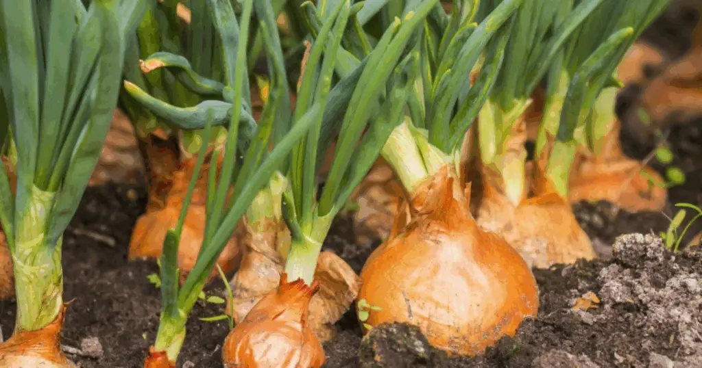 Las cebollas están listas para la cosecha cuando las hojas se doblan y comienzan a secarse. En ese momento, deja de regar durante unos días para facilitar el secado natural de los bulbos.