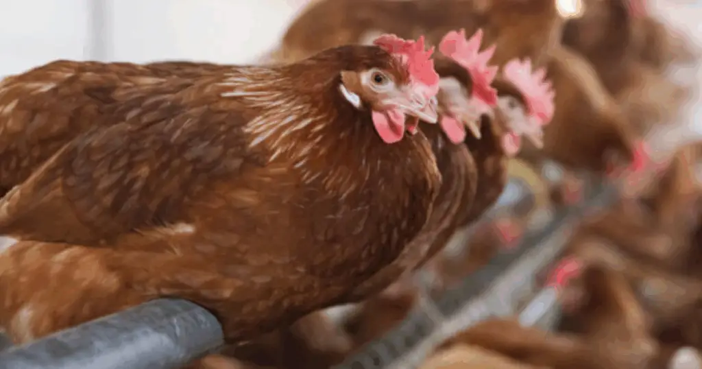 Cada gallina necesita aproximadamente 25 a 30 cm de espacio lineal para dormir cómodamente.