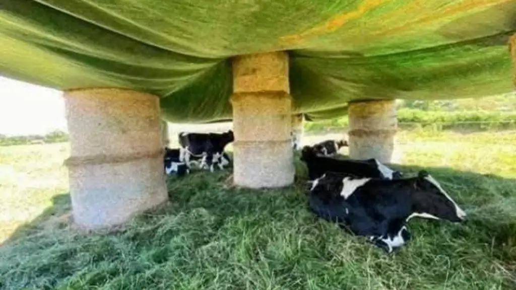 - Monitoreo y Adaptación: A medida que avanzaba la ola de calor, el agricultor monitoreó de cerca la respuesta de su ganado. Observó cómo la sombra proporcionada por las lonas les permitía mantenerse frescos y activos, lo que confirmó que su idea estaba funcionando.