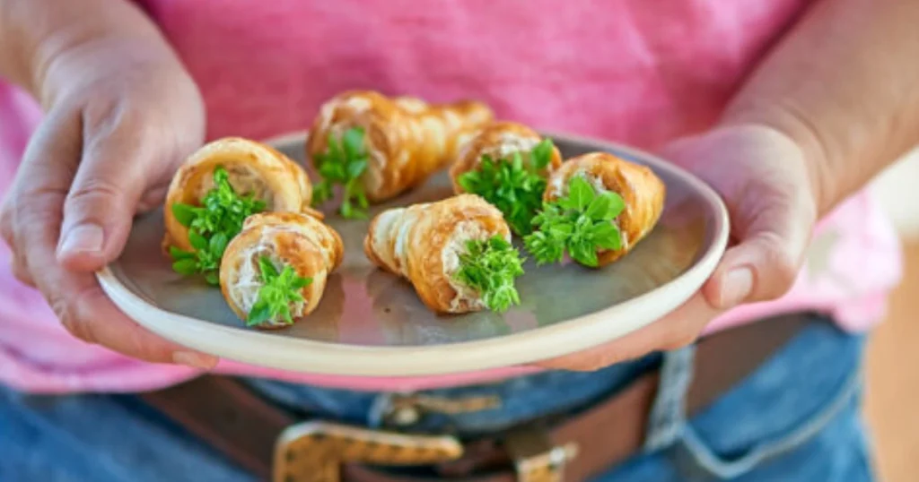 Conos de hojaldre rellenos de crema de queso: aperitivo fácil y elegante