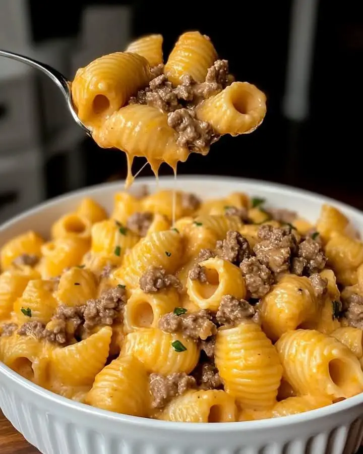 Coquillettes Crémeuses au Bœuf et Fromage Fondant : Un Plat Réconfort Total !