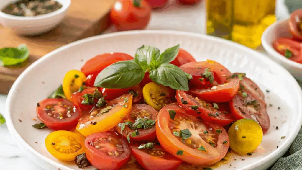 Deliciosa Ensalada de Tomate Marinado – ¡Simple, Fresca y Llena de Sabor!