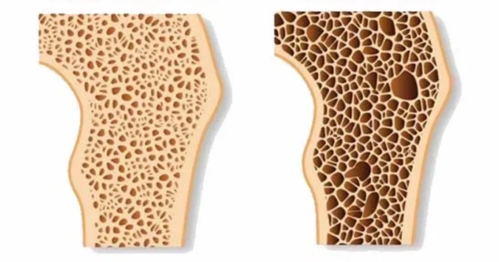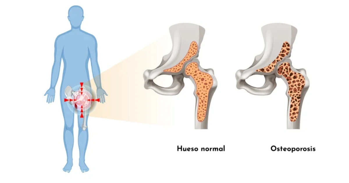 La osteoporosis no afecta directamente al cartílago ni provoca inflamación articular, sino que disminuye la densidad y resistencia de los huesos.