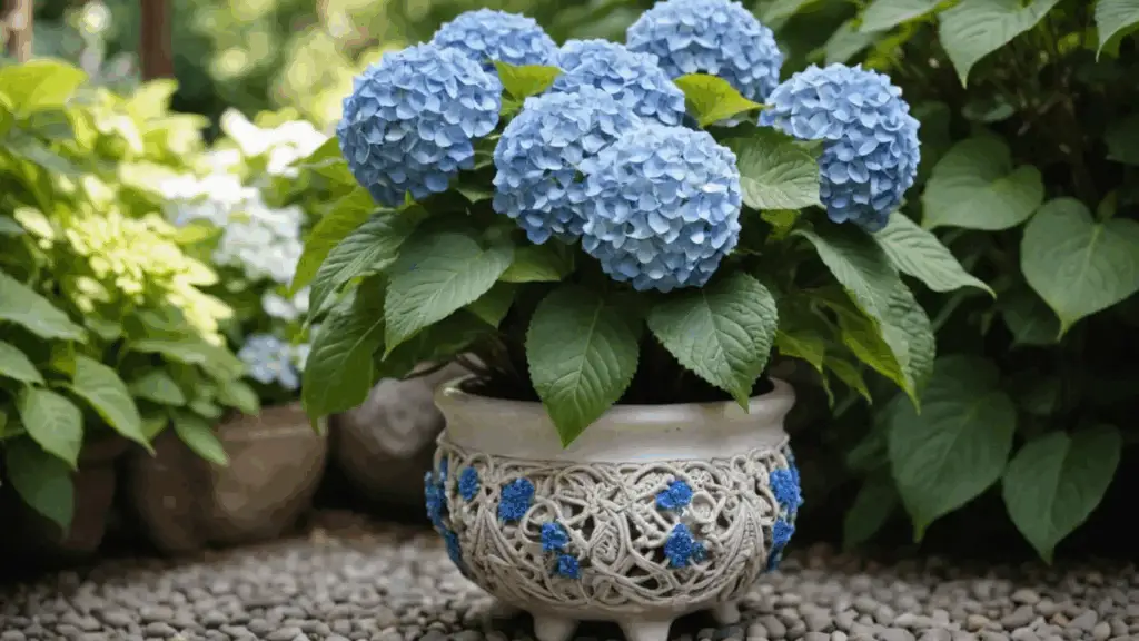 Si tienes hortensias en maceta, presta aún más atención, porque en estos recipientes la humedad se pierde con mayor facilidad. Un truco útil es colocar la maceta sobre una base de piedras con agua, pero sin que toque directamente las raíces, para mantener la humedad alrededor de la planta.