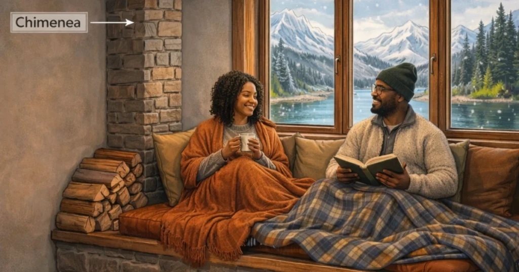 Esta ubicación permitía mantener el humo fuera de las áreas habitables y facilitaba el control del calor sin riesgos para los ocupantes.