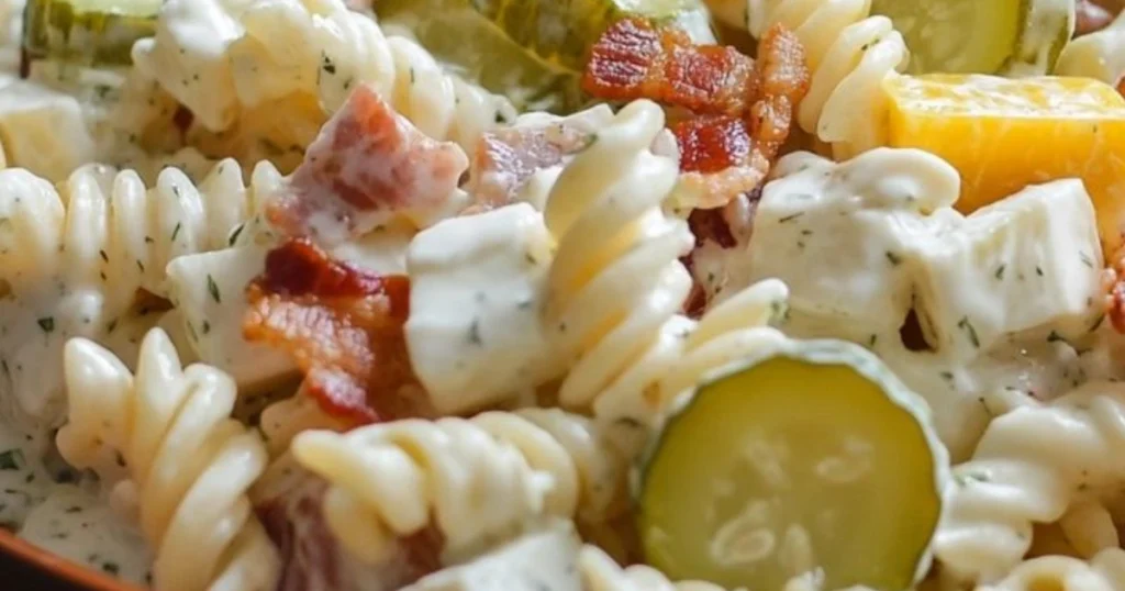 Si estás buscando una receta fresca, diferente y deliciosa para sorprender en reuniones familiares o comidas al aire libre, esta ensalada cremosa de pasta con pepinillos y bacon es todo lo que necesitas. Su combinación de sabores ácidos, cremosos y crujientes la convierten en una opción original, sabrosa y perfecta para cualquier ocasión.