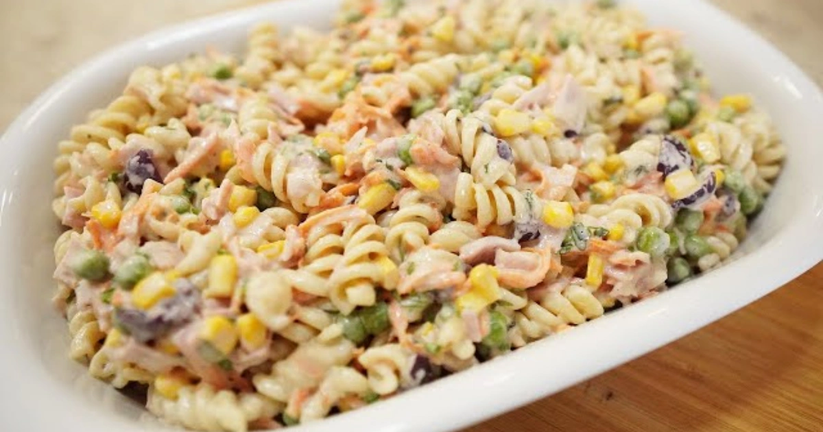 Ensalada de pasta cremosa con jamón y verduras: receta fácil y deliciosa