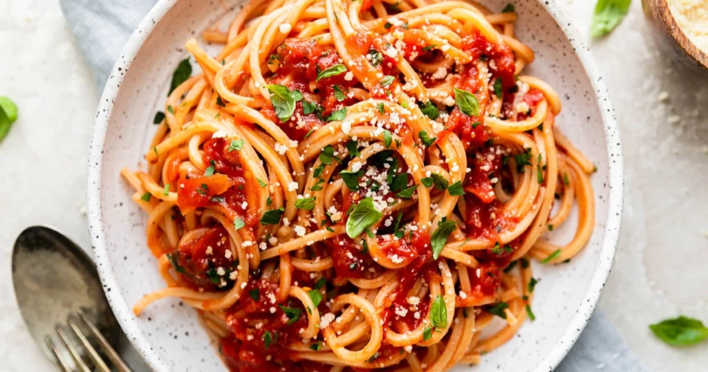 Espaguetis con salsa de tomate fresco y albahaca: receta tradicional italiana