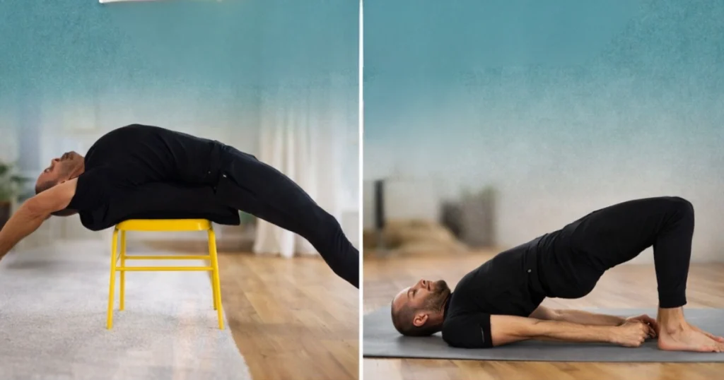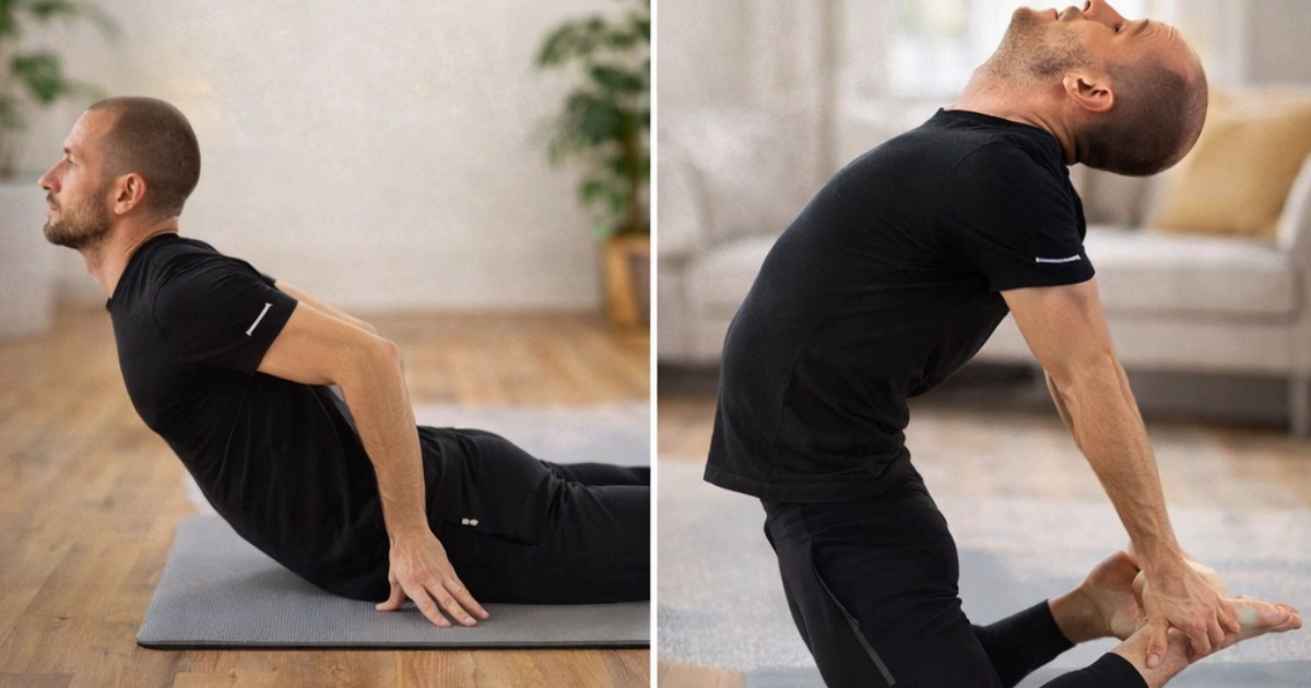 Este ejercicio está inspirado en una variación suave de posturas utilizadas en prácticas de movilidad y conciencia corporal. No requiere esterilla ni ropa especial y puede hacerse en casa o en la oficina.