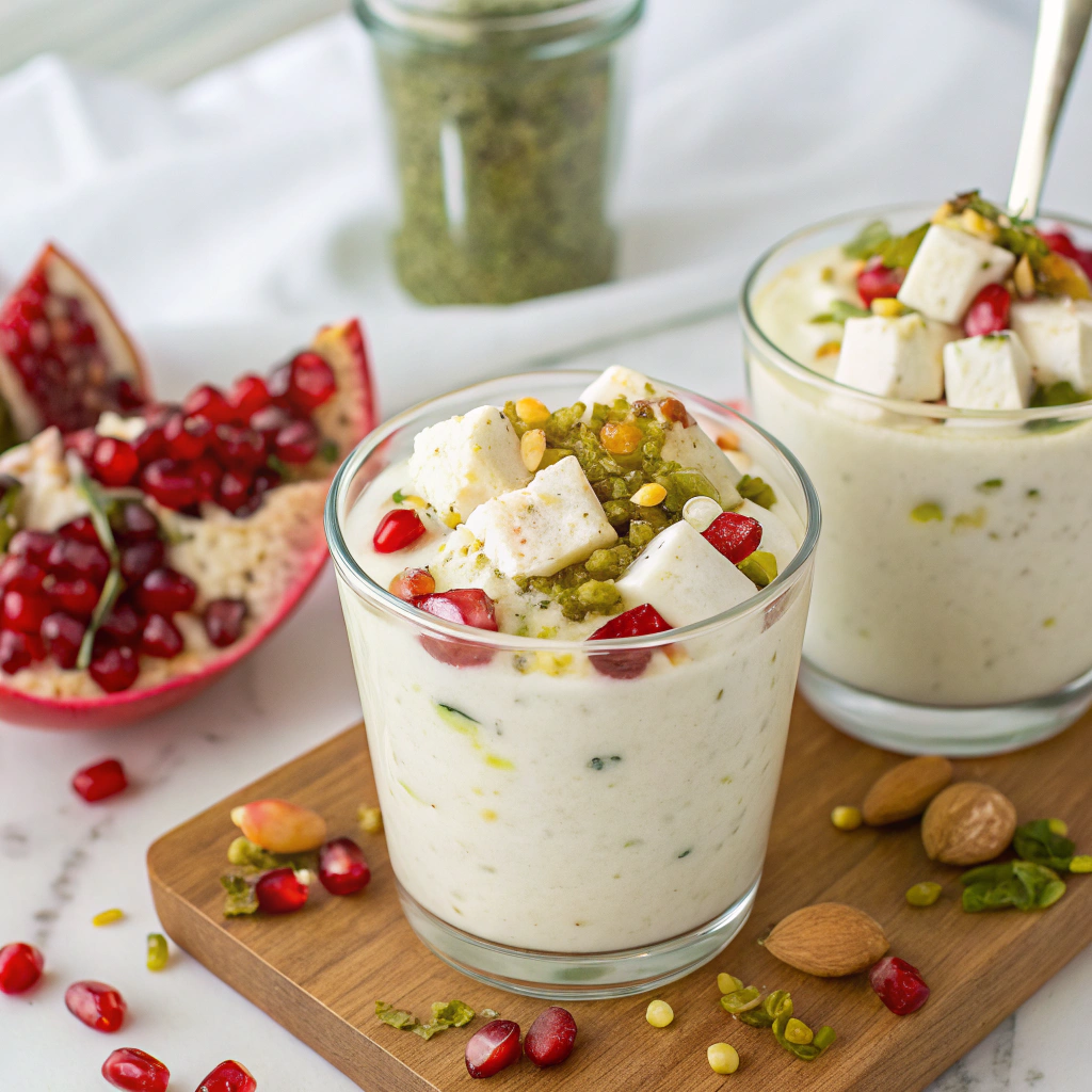 Feta Batido con Granada y Pistachos: ¡Refrescante, Cremoso y Perfecto para una Entrada Ligera! 🧀🍎🍊