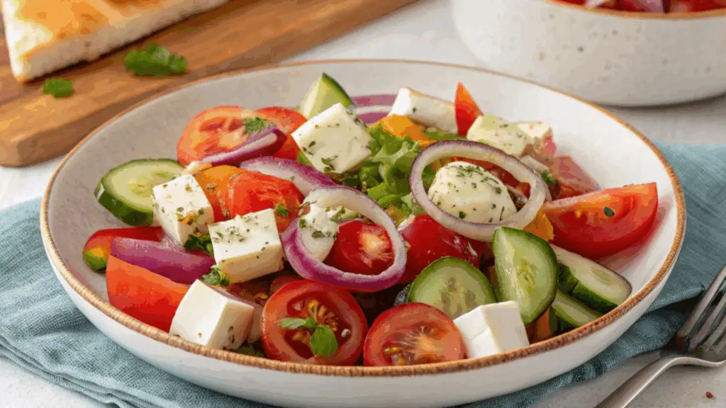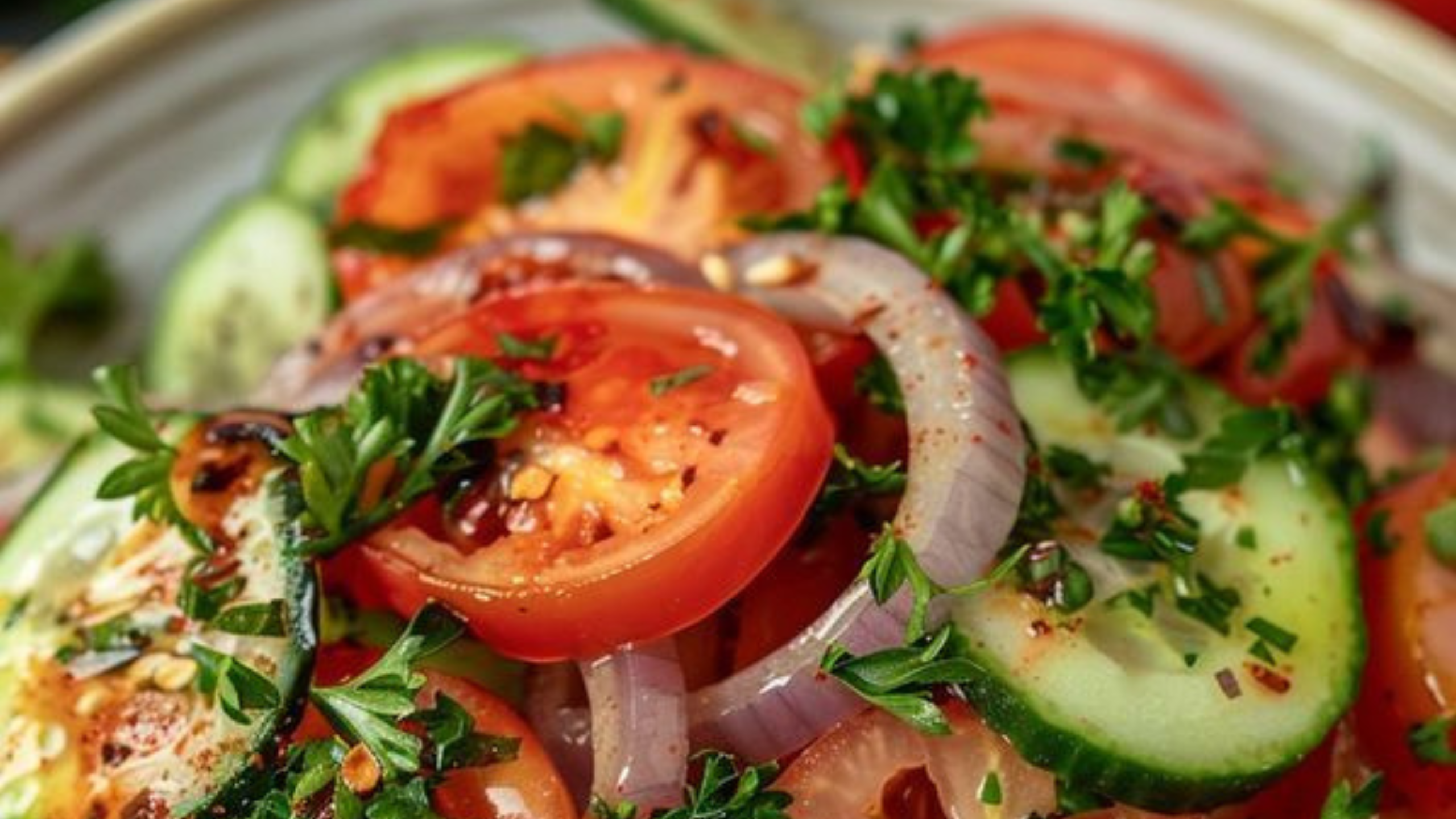 Fresco y Vibrante: Una Ensalada Colorida de Tomate, Pepino y Cebolla