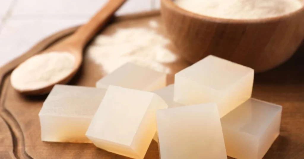 La grenetina es una proteína obtenida a partir del colágeno animal. Se utiliza ampliamente en repostería para dar firmeza y consistencia a postres como gelatinas, mousses y cheesecakes.