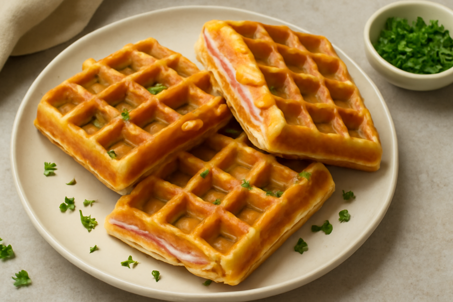 Gofres Crujientes Rellenos de Jamón y Queso – ¡Dorados por Fuera y Fundentes por Dentro!