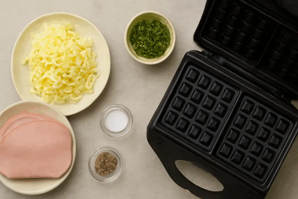 Ingredientes para Gofres Rellenos de Jamón y Queso 🧇🥓🧀