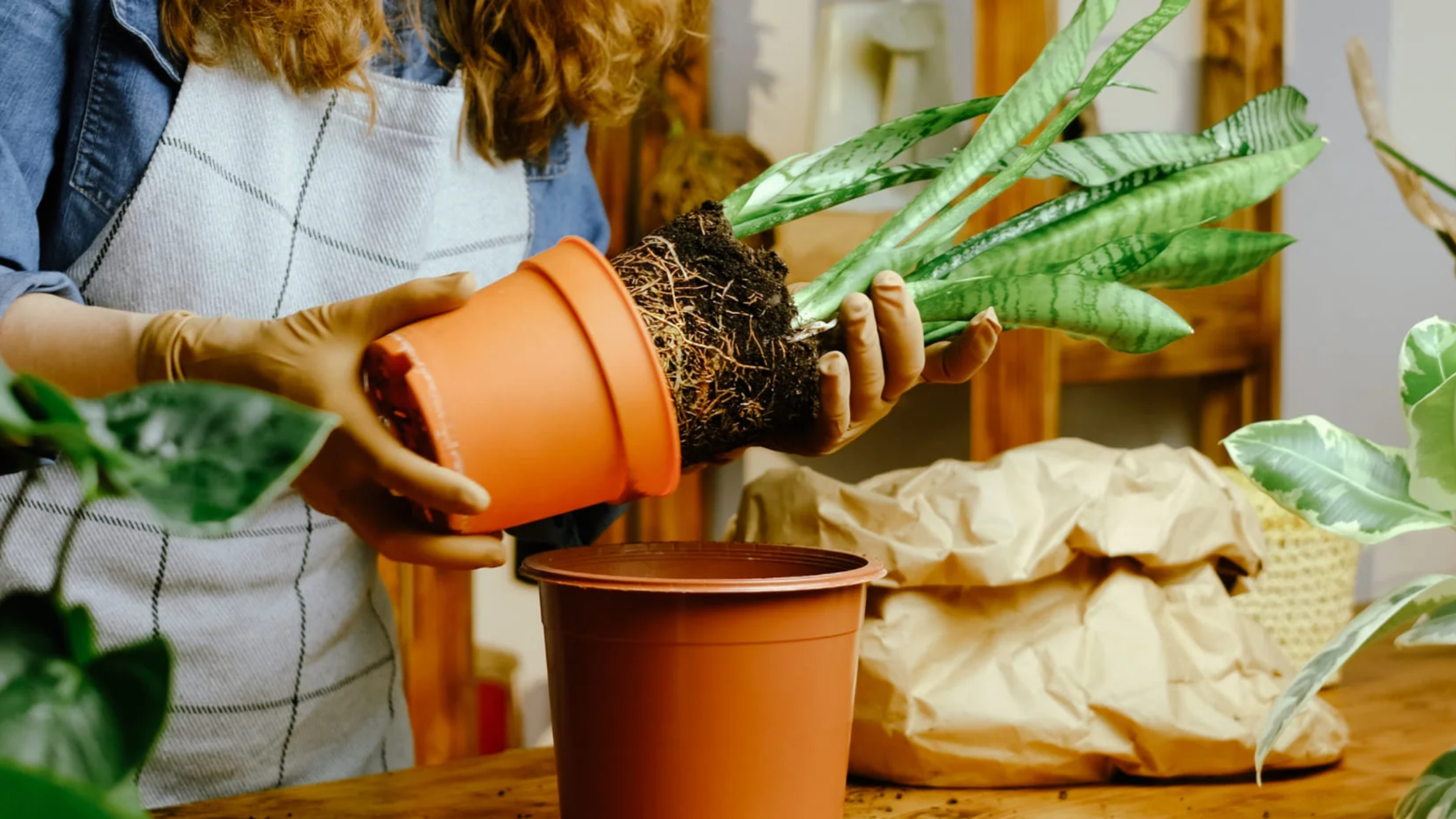 La planta serpiente puede crecer bastante con el tiempo. Cuando notes que las hojas se vuelven demasiado largas o que la maceta ya no es estable, es momento de hacer un trasplante.