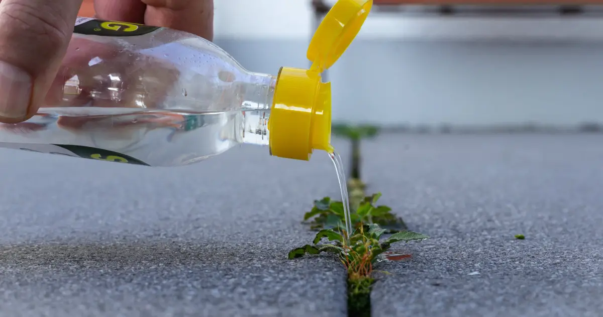 Vinagre y agua hirviendo eliminan brotes, pero no raíces profundas. Reaplica cuando vuelva a brotar.