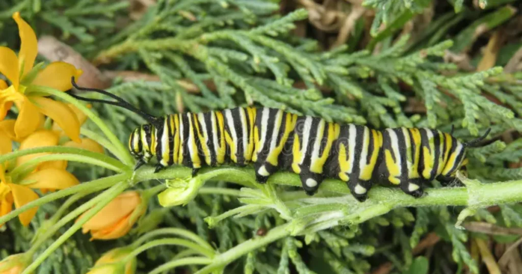 - 👀 Identificación: Mariposas blancas y larvas verdes con líneas negras.