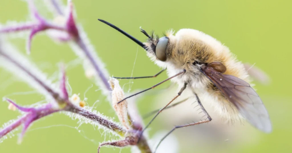 Las abejas voladoras (familia Bombyliidae) son insectos pequeños y peludos que, a pesar de su apariencia tierna y esponjosa, cumplen una función vital en el ecosistema: la polinización. Aunque a simple vista se parecen a las abejas, son en realidad una familia de moscas que han evolucionado para imitar a las abejas en su aspecto y comportamiento. Estos insectos son conocidos por sus habilidades acrobáticas y su adorable apariencia, lo que los convierte en uno de los polinizadores más encantadores de la naturaleza.