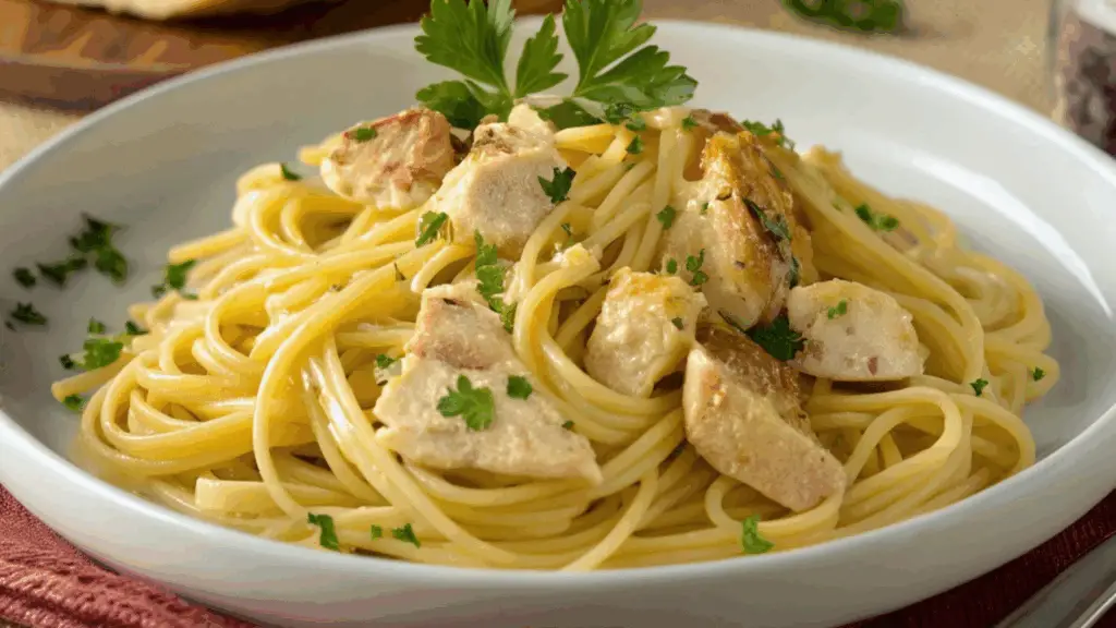 Linguini de Pollo con Mantequilla Vaquera: ¡Fácil, Sabroso y Perfecto para una Cena Reconfortante!