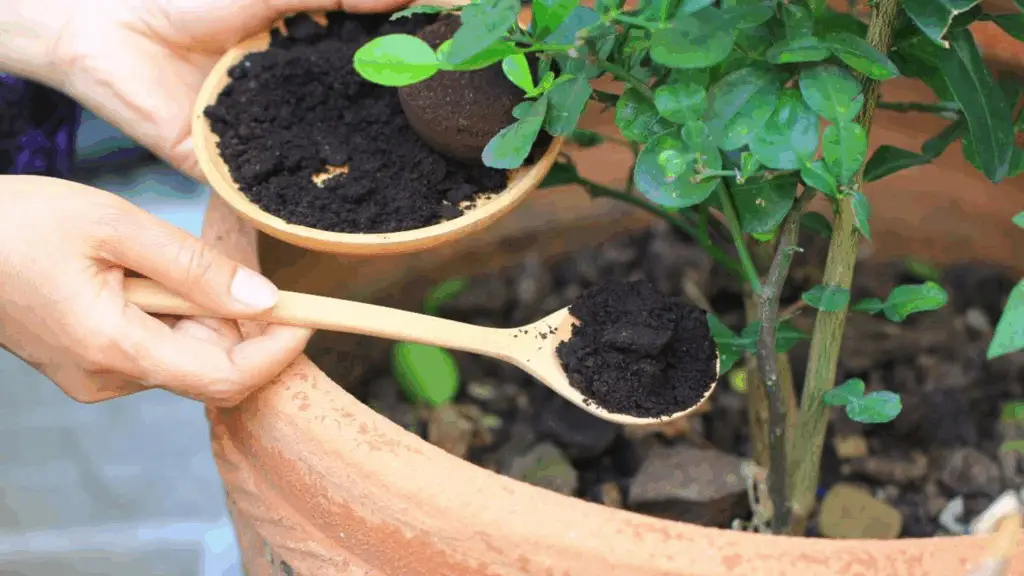 Mezcla una pequeña cantidad de café molido con el sustrato de la planta o espolvorea una capa fina en la superficie del suelo una vez al mes.