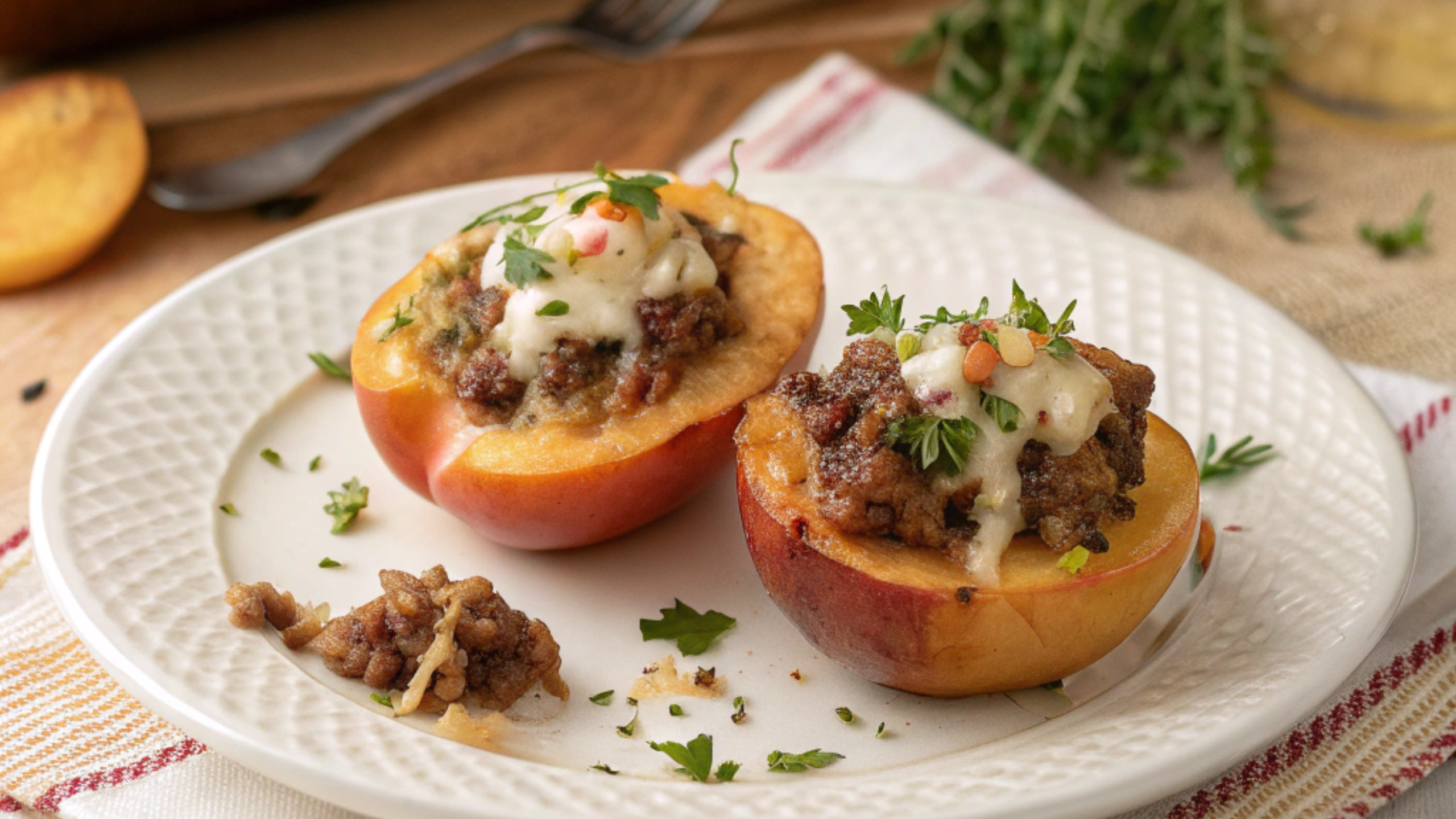 Melocotones Rellenos de Carne y Queso Fundido – ¡Dulce, Salado y Súper Delicioso!