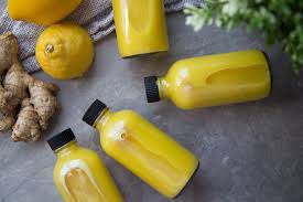 3. Licúa todo: Coloca el ajo, la cúrcuma, los jugos y el agua en una licuadora. Mezcla durante unos segundos hasta obtener una bebida homogénea.