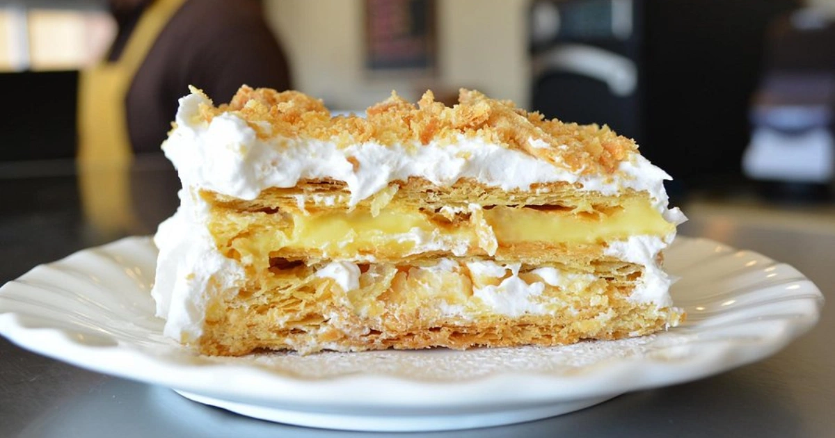 Se trata de un pastel elegante y a la vez sencillo, que combina láminas de hojaldre dorado y crujiente con una abundante capa de nata montada. El contraste entre la textura ligera de la crema y el crujido del hojaldre lo convierte en un postre irresistible para cualquier ocasión especial.