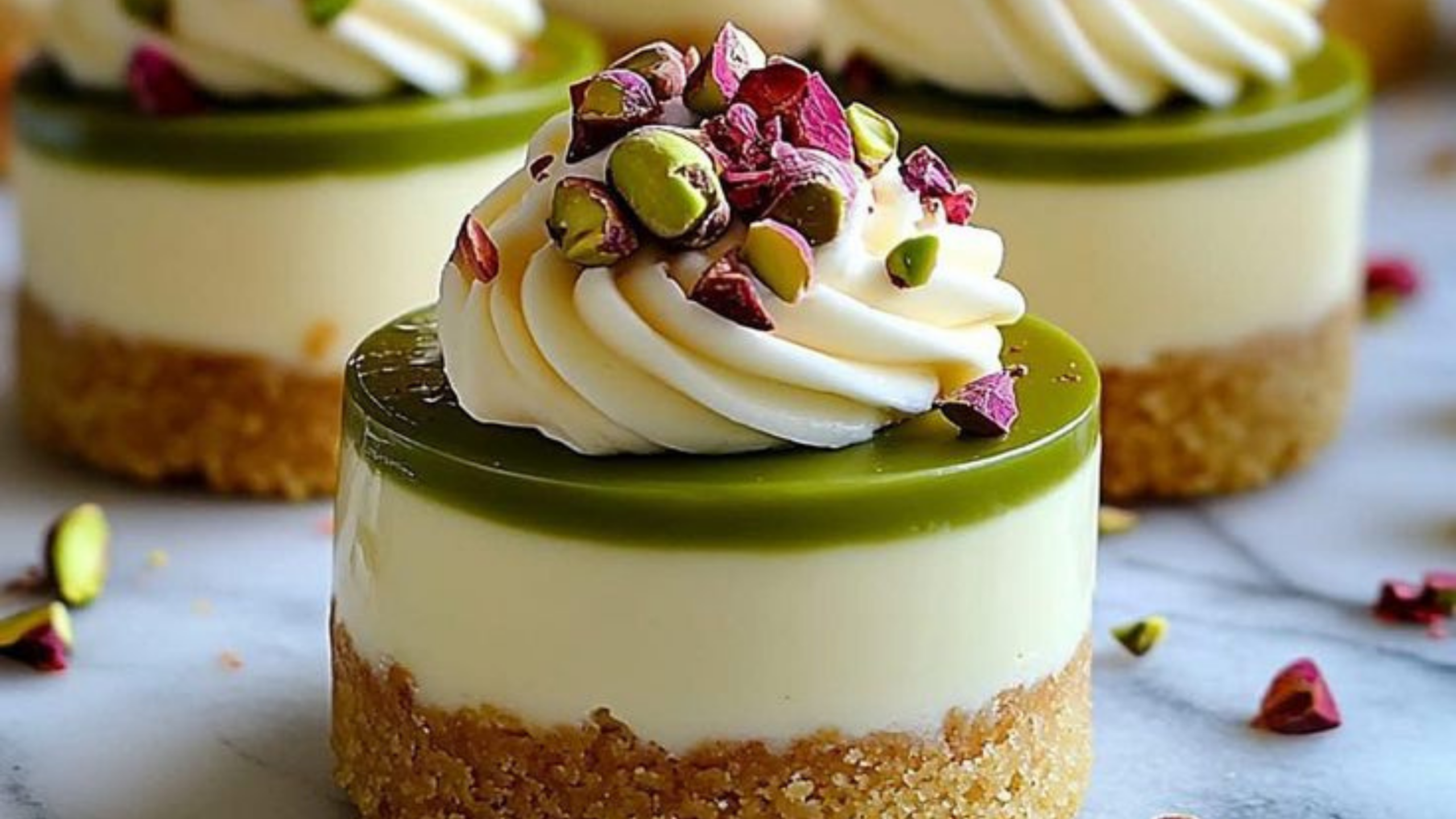 Mini Cheesecakes de Pistacho y Chocolate Blanco