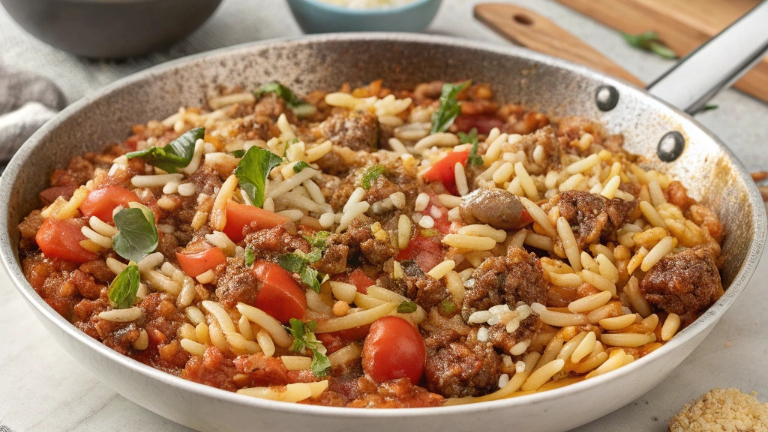 One-Pan Orzo con Carne Molida y Salsa Cremosa de Tomate – Fácil, Sabroso y Listo en un Solo Sartén