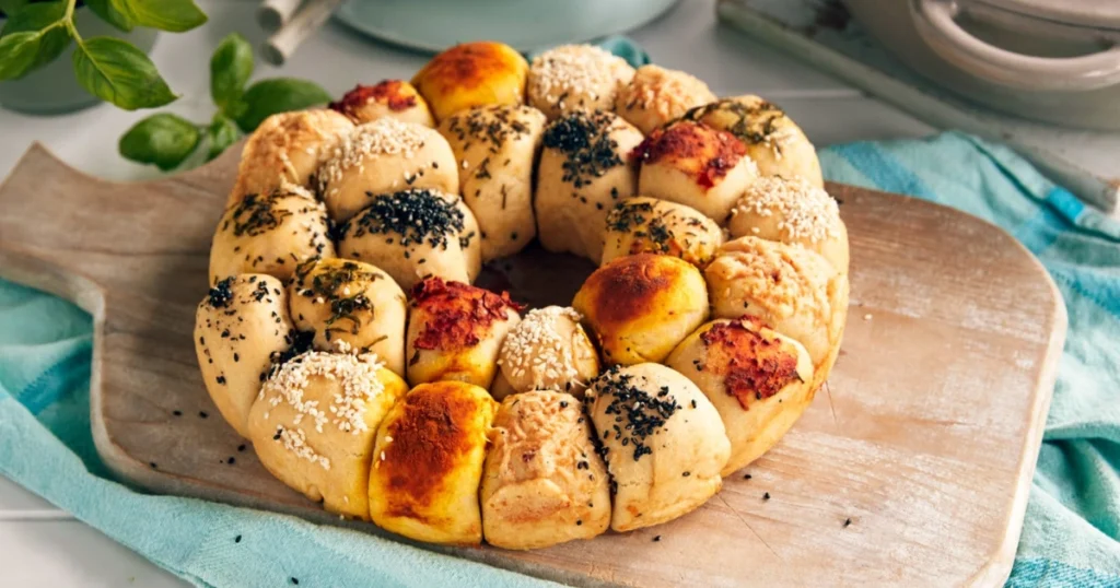 El pan casero ofrece infinitas posibilidades creativas, y una de las más vistosas es el pan corona de bolitas sazonadas, también conocido como pull-apart bread o monkey bread salado. Su atractivo radica en que cada bolita de masa se cubre con especias, hierbas o semillas distintas, lo que le da un aspecto colorido, variado y muy apetitoso. Además, es perfecto para compartir, ya que cada persona puede desprender fácilmente una porción con las manos.