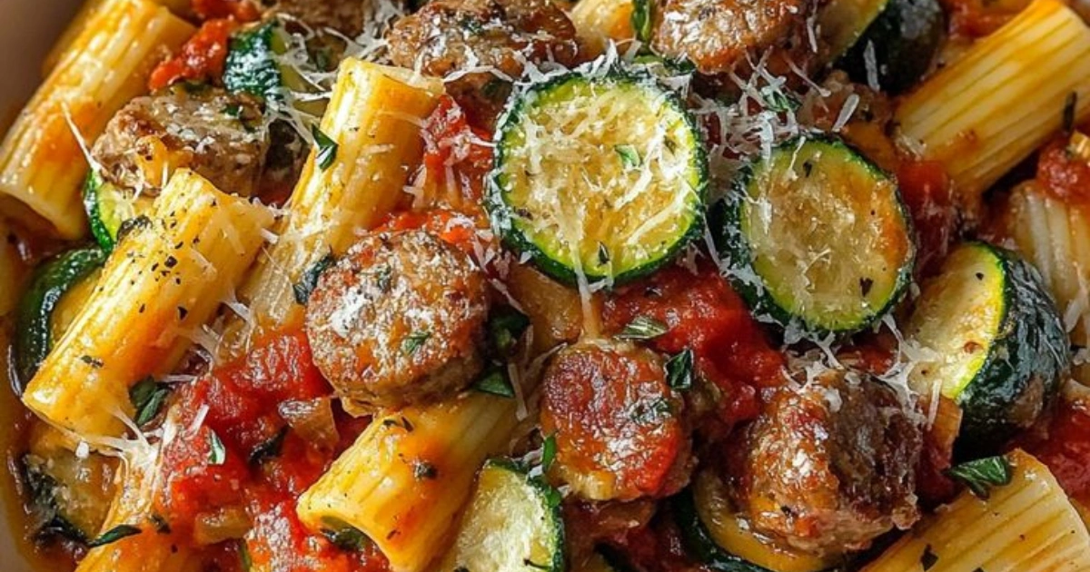 Pasta con calabacín, tomates cherry y salchicha: receta mediterránea fácil y deliciosa