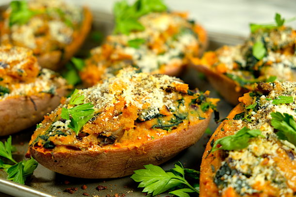Patatas Dulces Rellenas de Champiñones y Espinacas Cremosas: Receta Saludable y Llena de Sabor