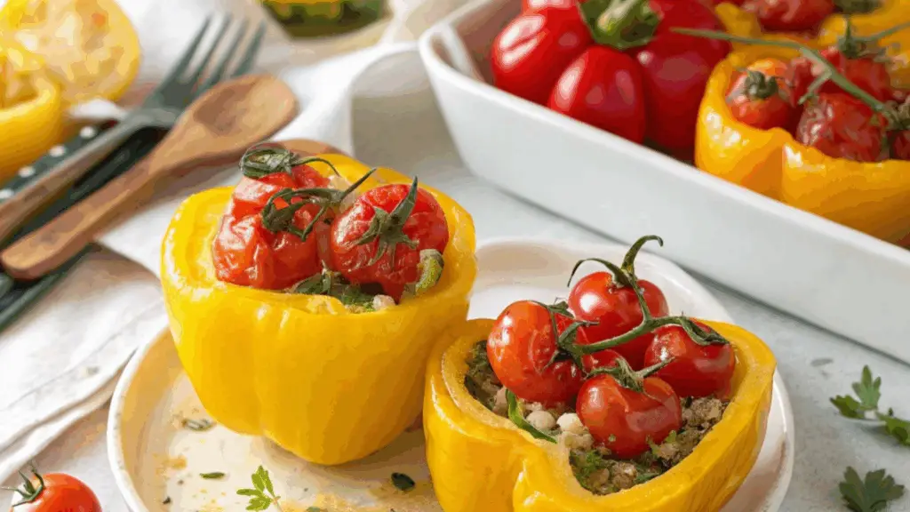 Pimientos Amarillos Rellenos de Tomatitos – ¡Color, Sabor y Salud en un Solo Bocado!
